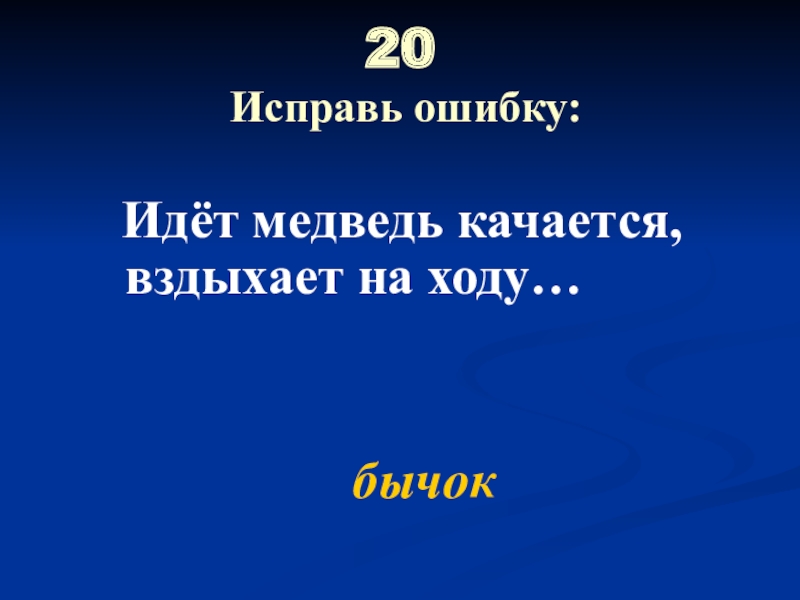 20  Исправь ошибку: Идёт медведь качается, вздыхает на ходу…бычок