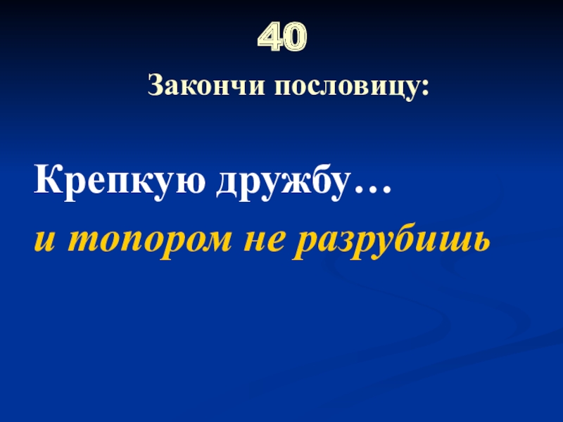 40  Закончи пословицу:Крепкую дружбу…и топором не разрубишь