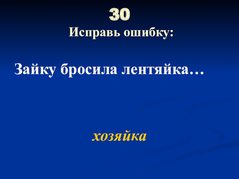 30  Исправь ошибку:Зайку бросила лентяйка…хозяйка