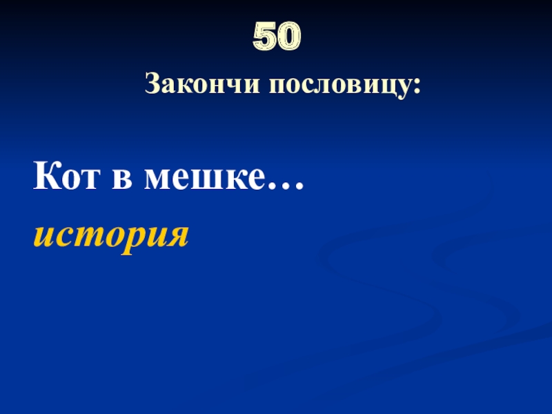 50  Закончи пословицу:Кот в мешке…история
