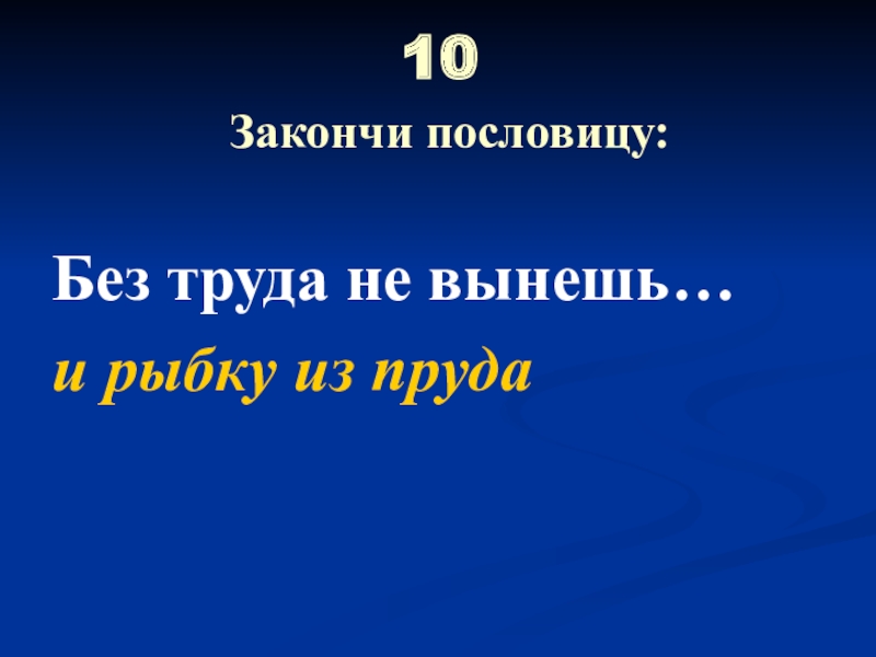 10  Закончи пословицу:Без труда не вынешь…и рыбку из пруда