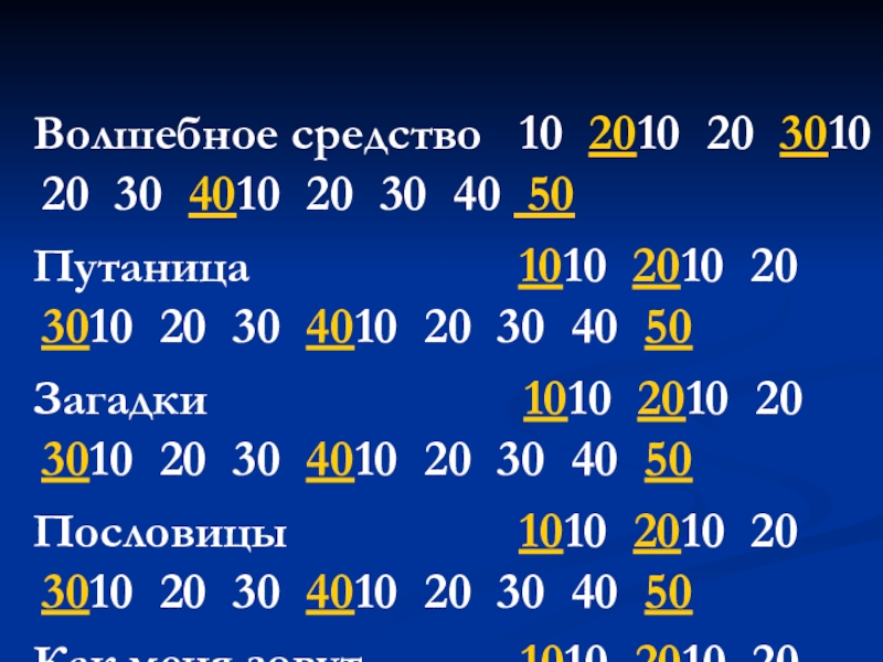 Загадки 1010 2010 20 3010 20 30 4010 20 30 40 50