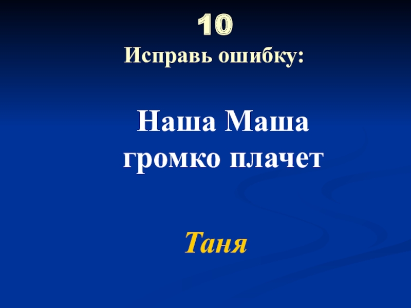 10    Исправь ошибку: Наша Маша громко плачетТаня