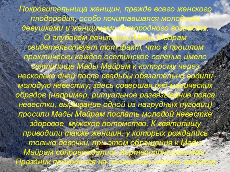 Слайд 7Осетинское женское святилище «МАДЫ-МАЙРАМ»