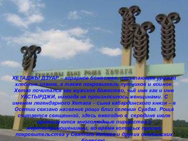 Слайд 15ХЕТАДЖЫ ДЗУАР – аграрное божество, посылающее урожай хлебных злаков, а также