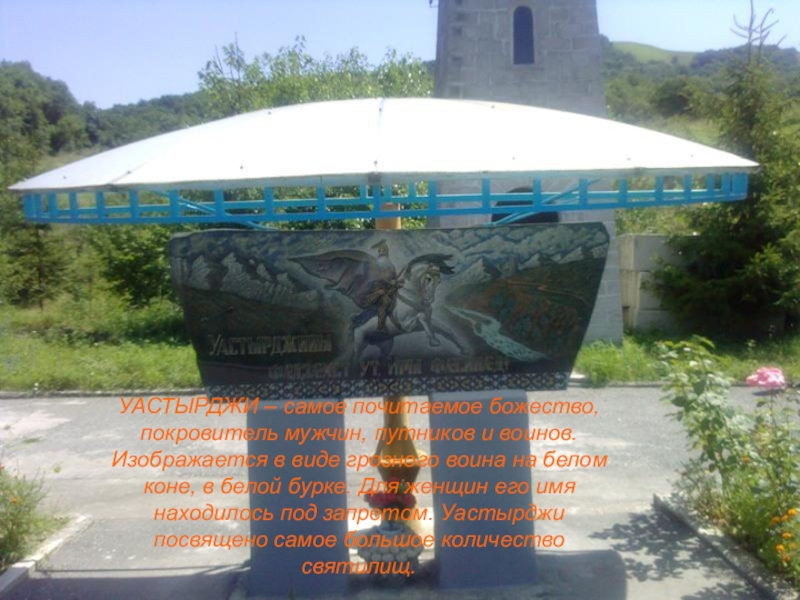 Слайд 2УАСТЫРДЖИ – самое почитаемое божество, покровитель мужчин, путников и воинов. Изображается