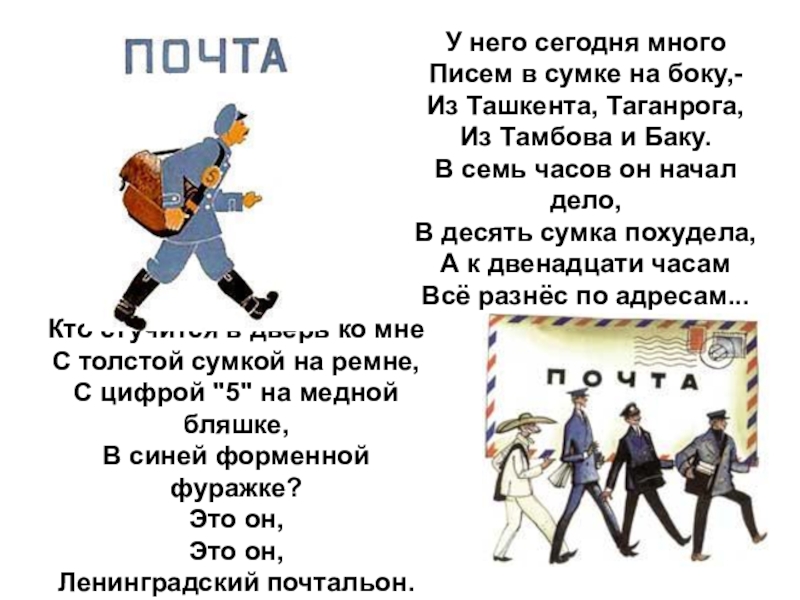 Писем в сумке на боку,-