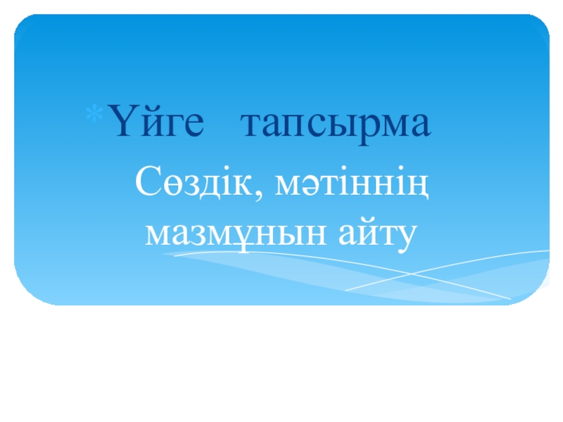 Сөздік, мәтіннің мазмұнын айтуҮйге  тапсырма