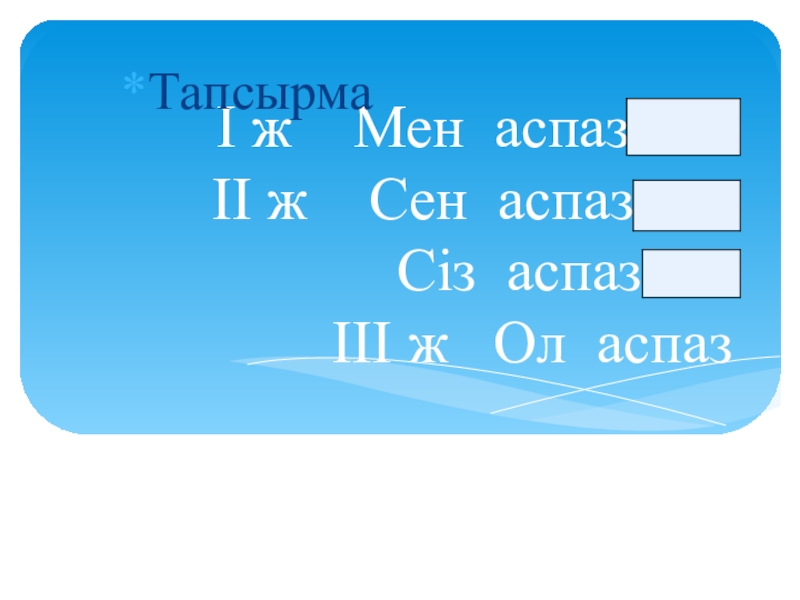 I ж  Мен аспазбын    II ж  Сен аспазсың