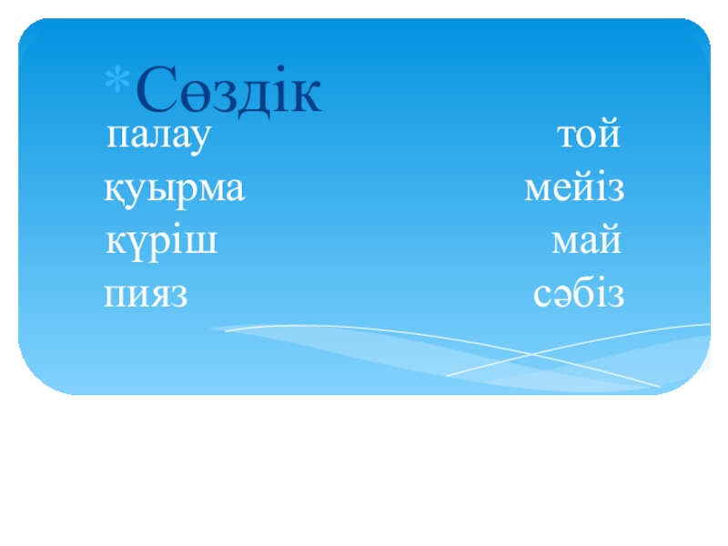 Слайд 12Сөздік, мәтіннің мазмұнын айту
