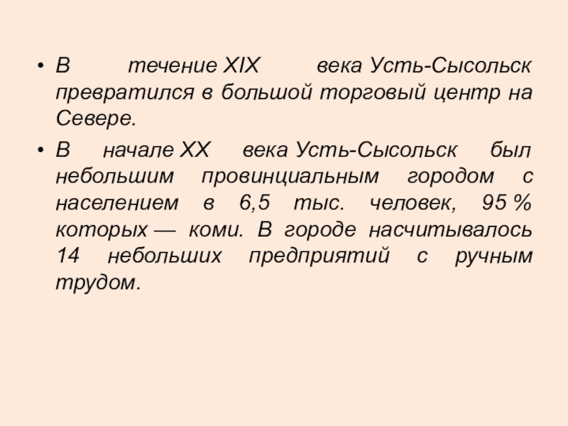 Слайд 9В течение XIX века Усть-Сысольск превратился в большой торговый центр на Севере.