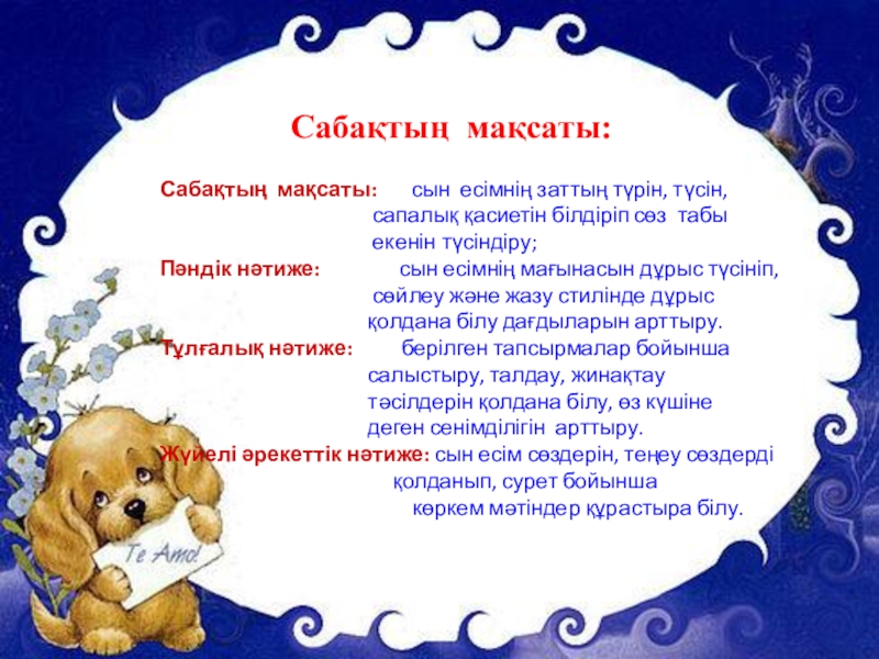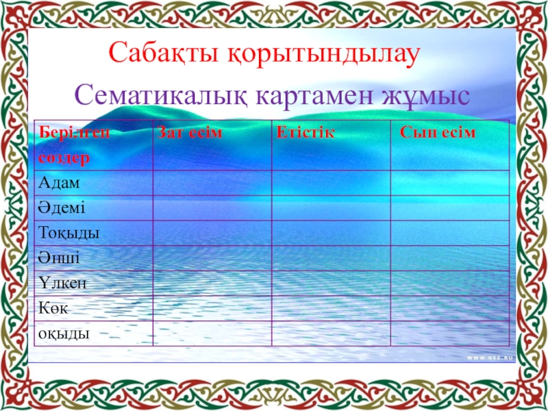 Заттың атын білдіретін сөзге сәйкес сынын білдіретін сөзді