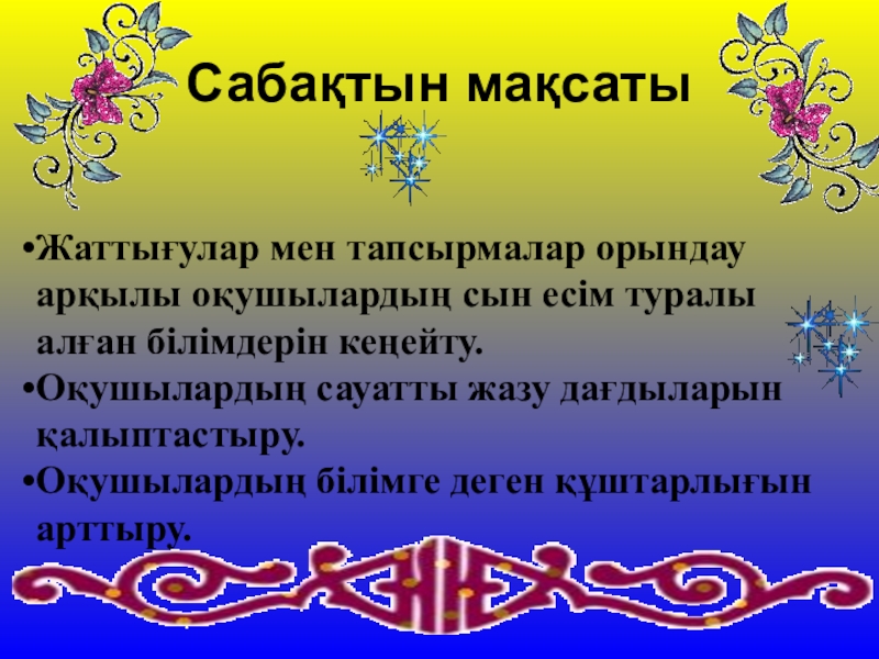 Оқушылардың сауатты жазу дағдыларын қалыптастыру.