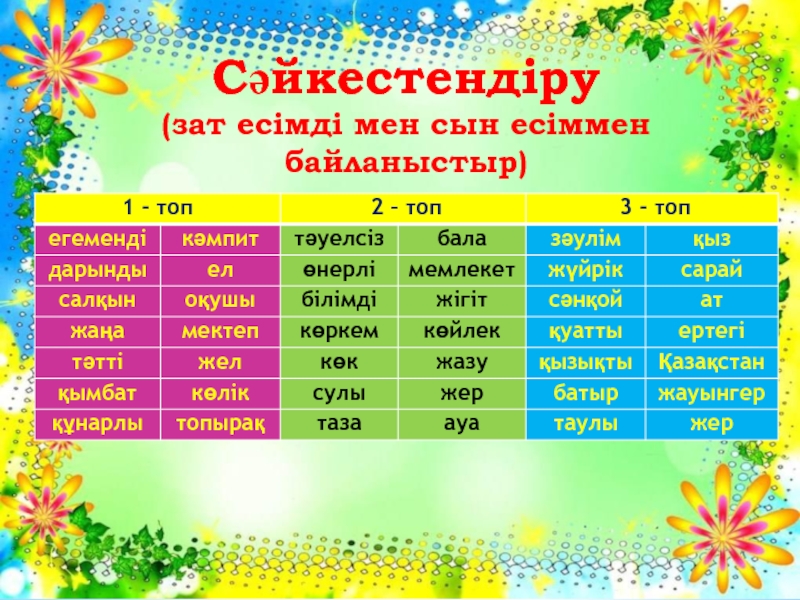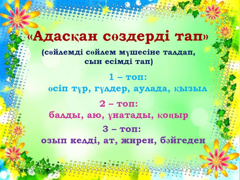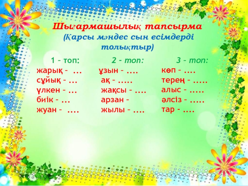 (сөйлемді сөйлем мүшесіне талдап, сын есімді тап)