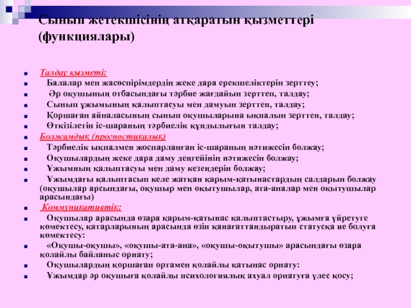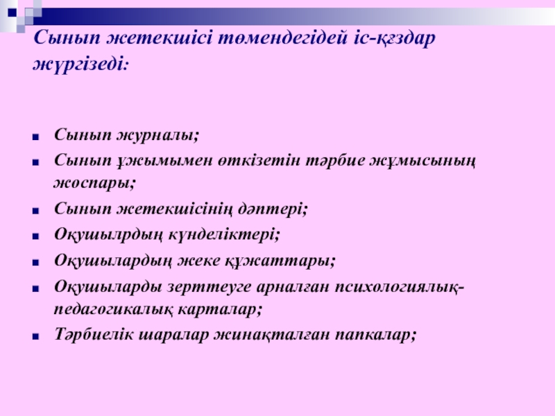 Ата-аналармен жұмыс, пән мұғалімдермен жұмыс;