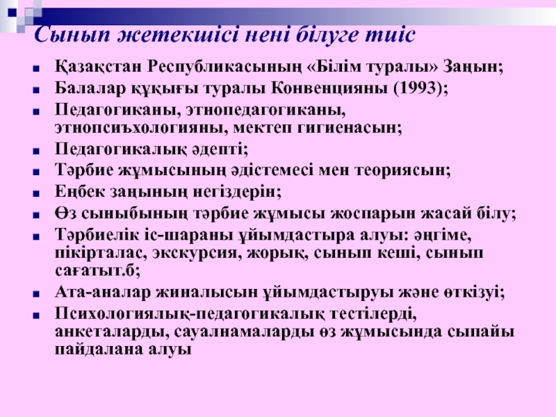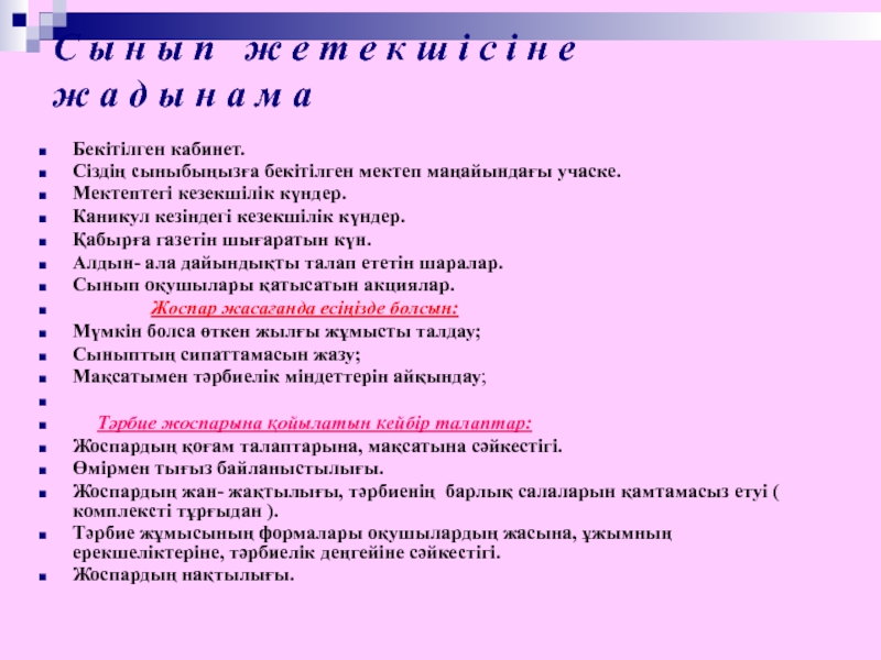 Тәрбие жоспарына қойылатын кейбір талаптар: