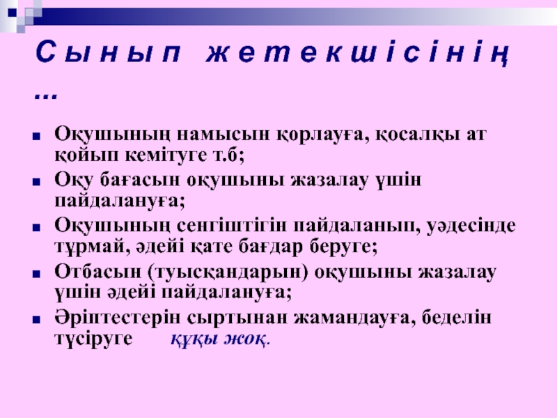 Оқушының намысын қорлауға, қосалқы ат қойып кемітуге т.б;