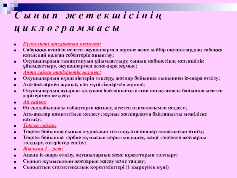 Тоқсан бойынша сынып журналын толтыру,ата-аналар жиналысын өткізу;