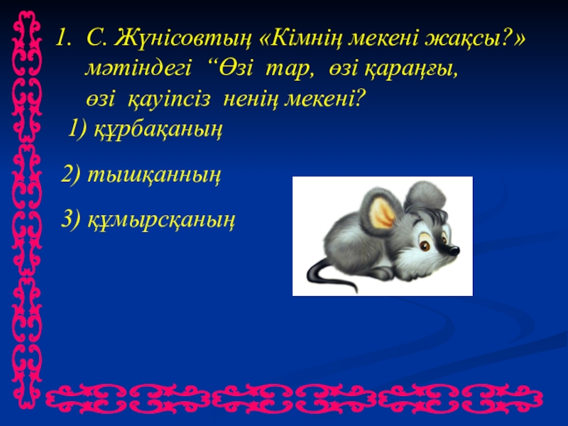 1. С. Жүнісовтың «Кімнің мекені жақсы?»