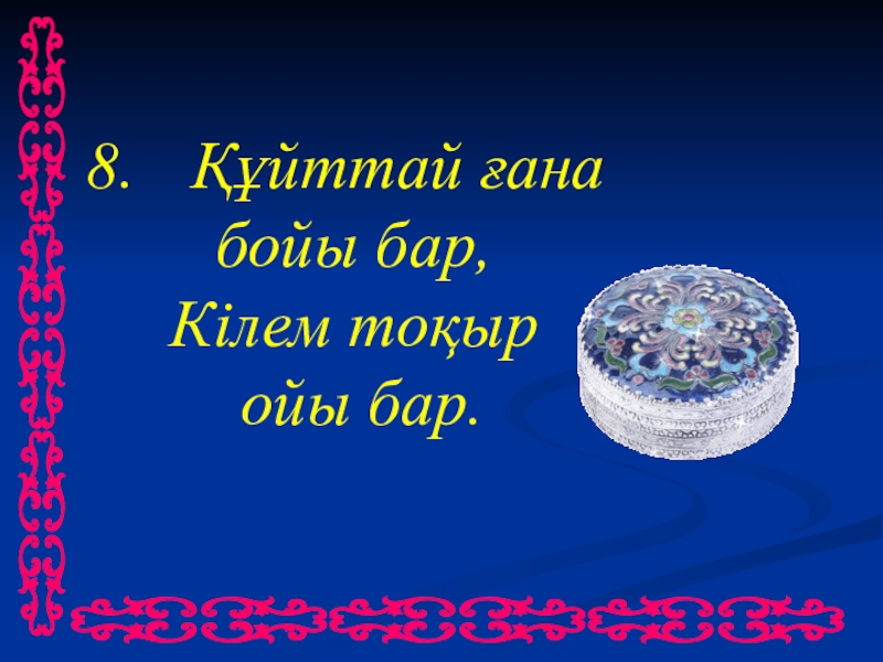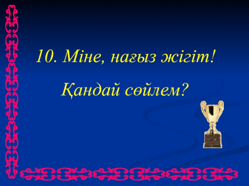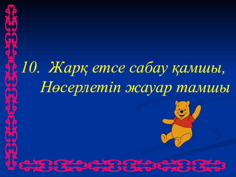 Слайд 8310. Жарқ етсе сабау қамшы,