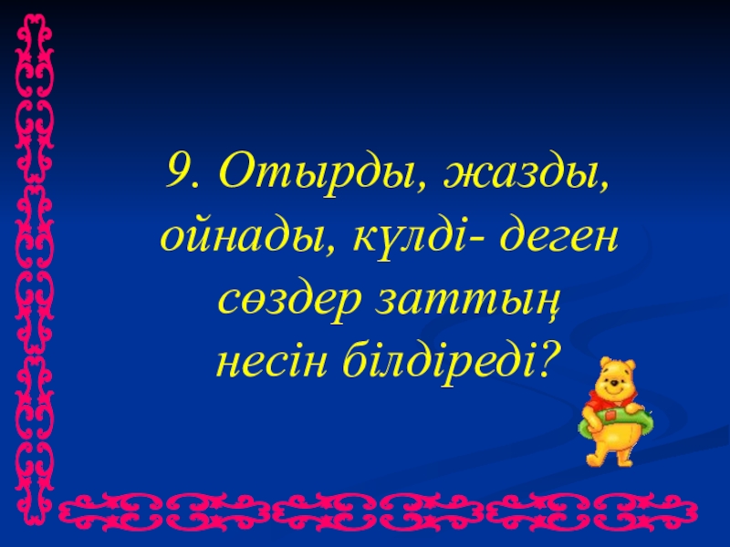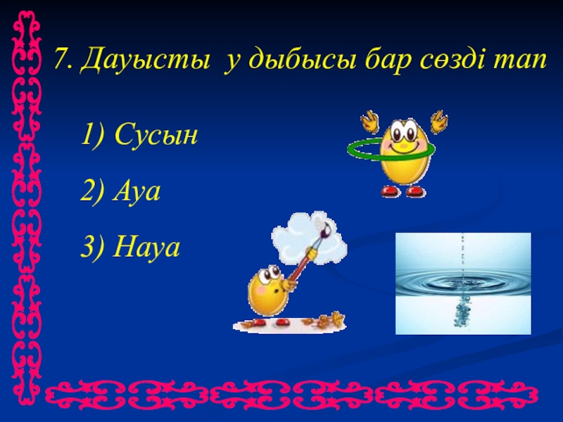 Слайд 10 7. Дауысты у дыбысы бар сөзді тап
