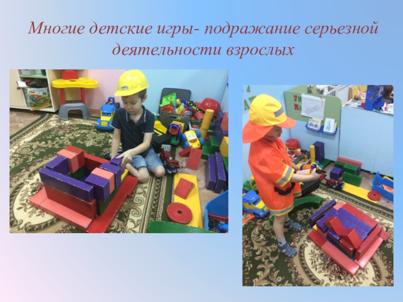 Слайд 3Многие детские игры- подражание серьезной деятельности взрослых
