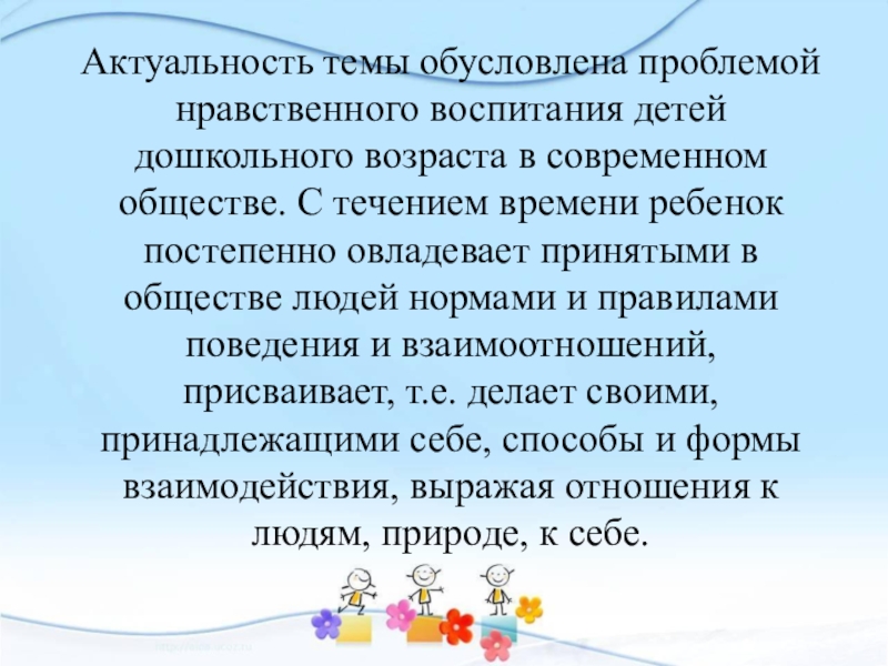 Актуальность темы обусловлена проблемой нравственного воспитания детей дошкольного возраста в современном