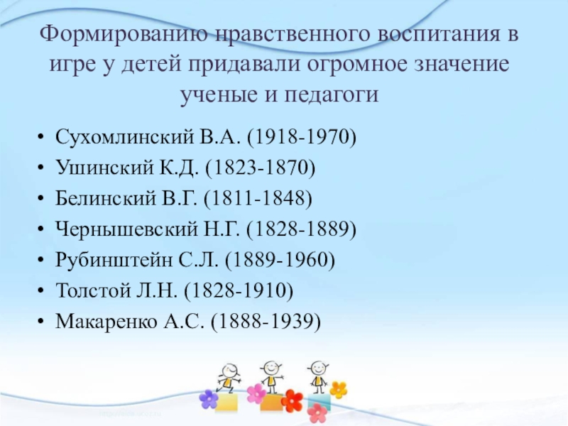 Формированию нравственного воспитания в игре у детей придавали огромное значение ученые