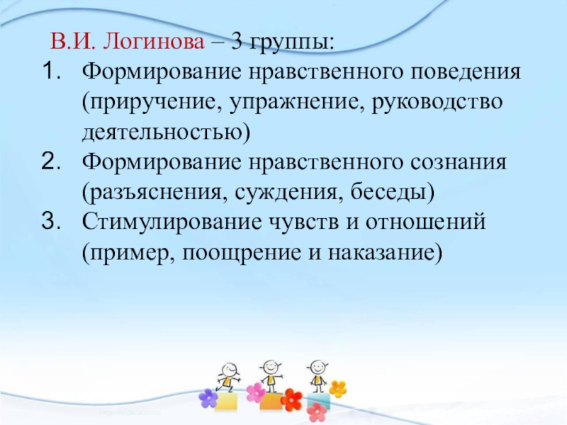Формирование нравственного поведения(приручение, упражнение, руководство деятельностью)