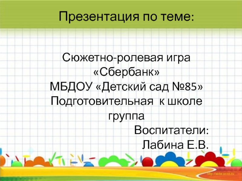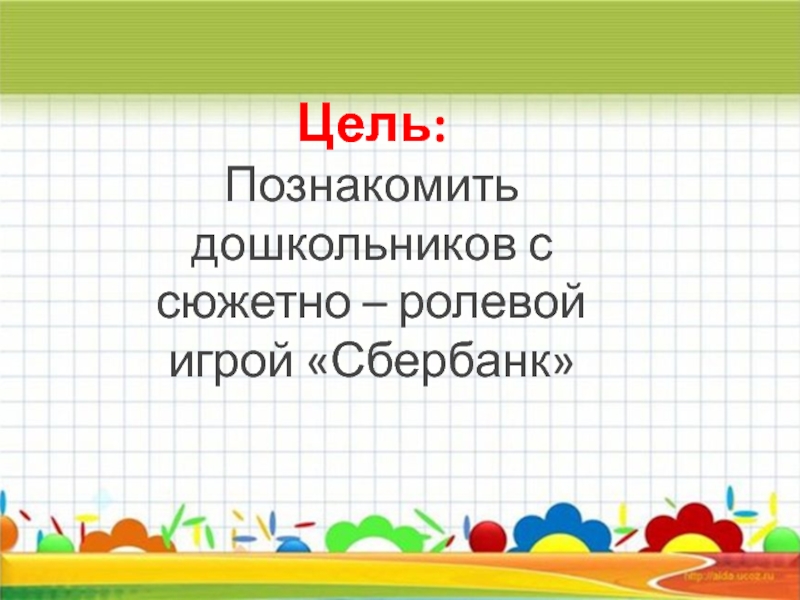 Познакомить дошкольников с сюжетно – ролевой игрой «Сбербанк»