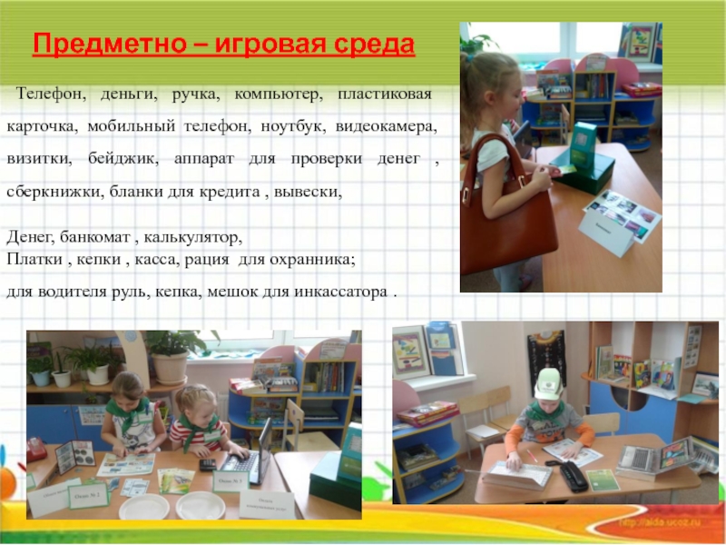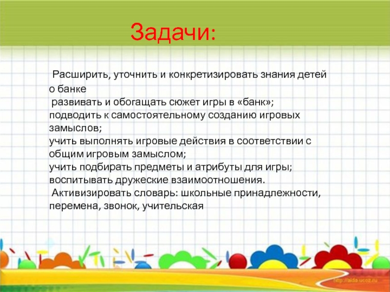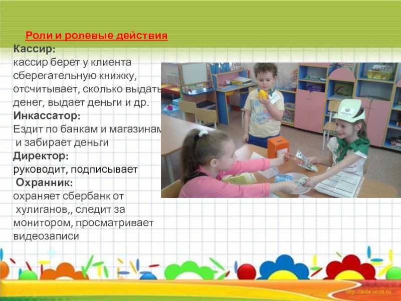 развивать и обогащать сюжет игры в «банк»;