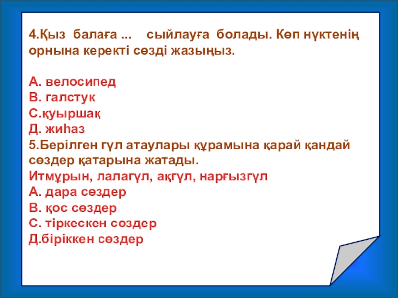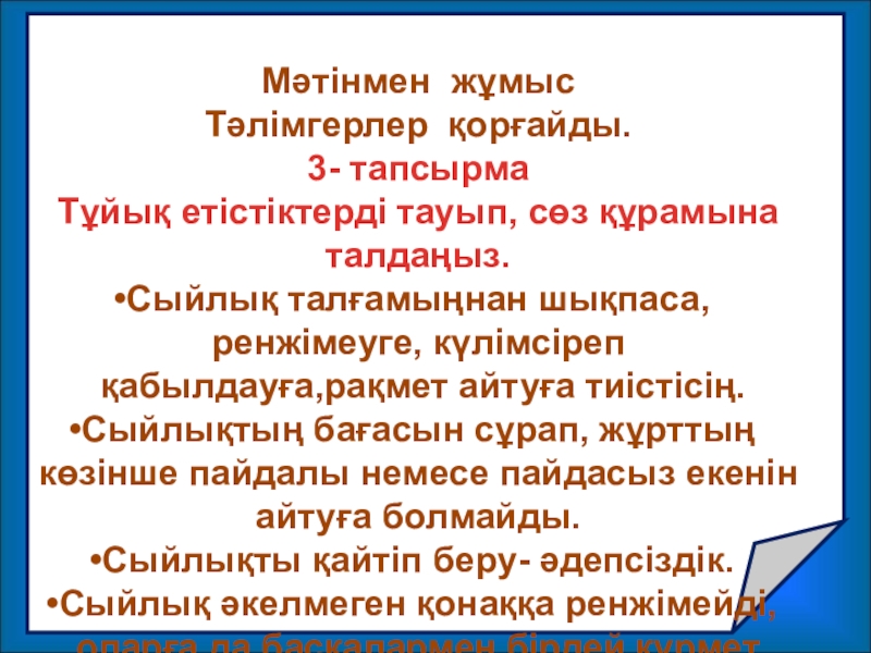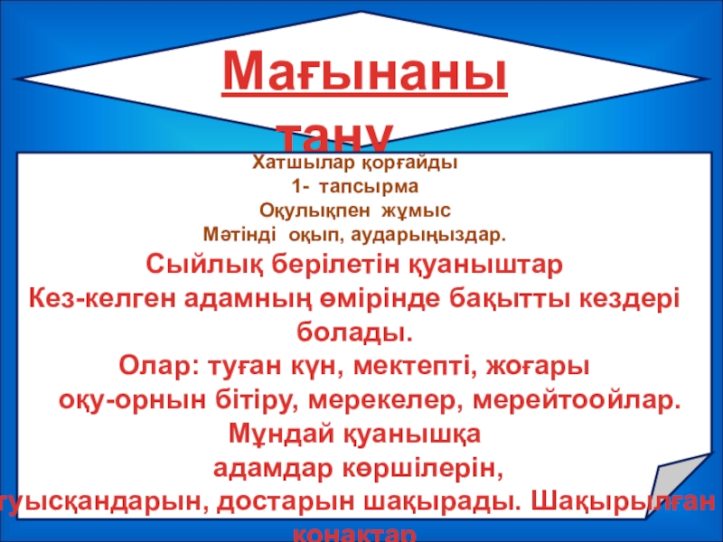 7.Үйге тапсырма “Менің сүйікті сыйлығым ” эссе жазу