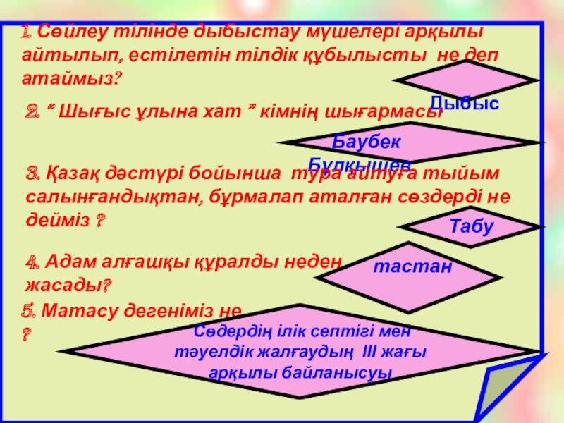 3. Қазақ дәстүрі бойынша тура айтуға тыйым салынғандықтан, бұрмалап аталған сөздерді не дейміз ?