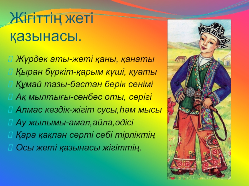 Слайд 8Жігіттің жеті қазынасы.