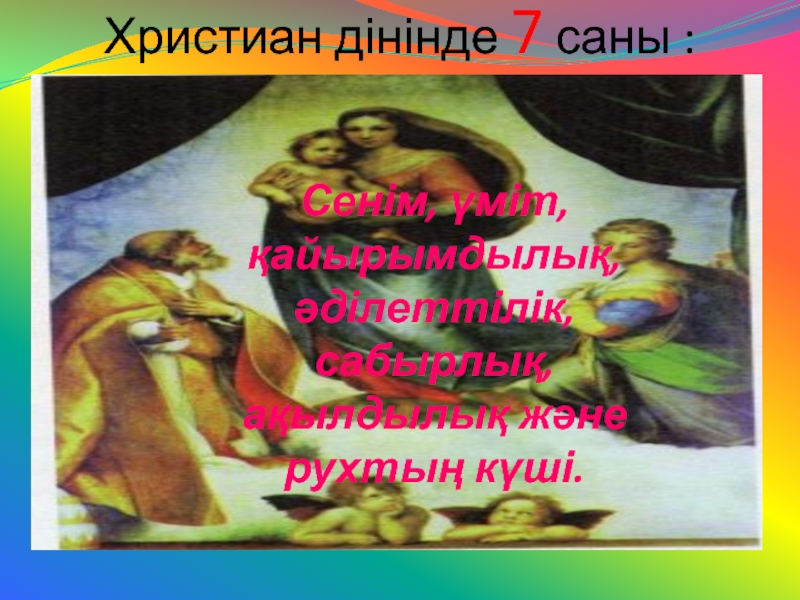Слайд 24Христиан дінінде 7 саны :