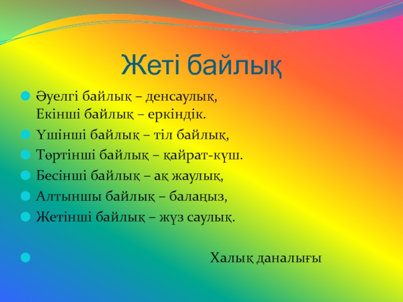 Слайд 10Жеті байлық