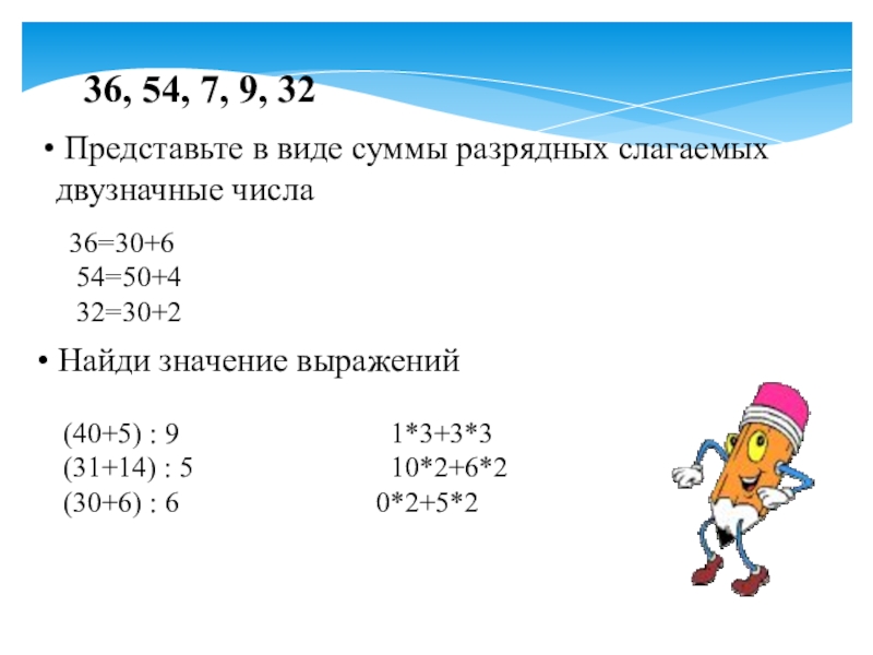Представьте в виде суммы разрядных слагаемых двузначные числа
