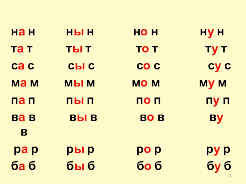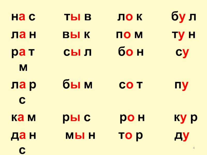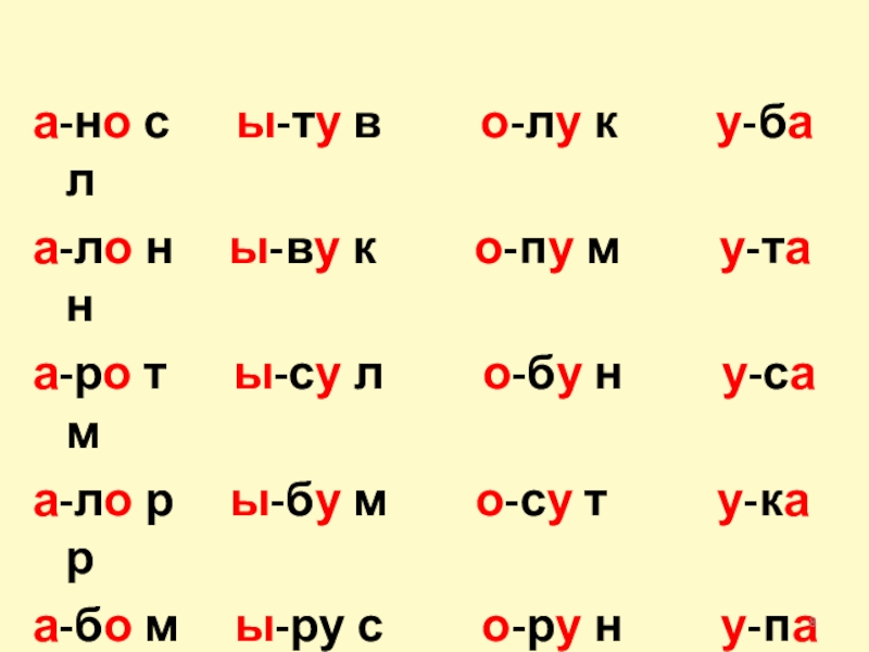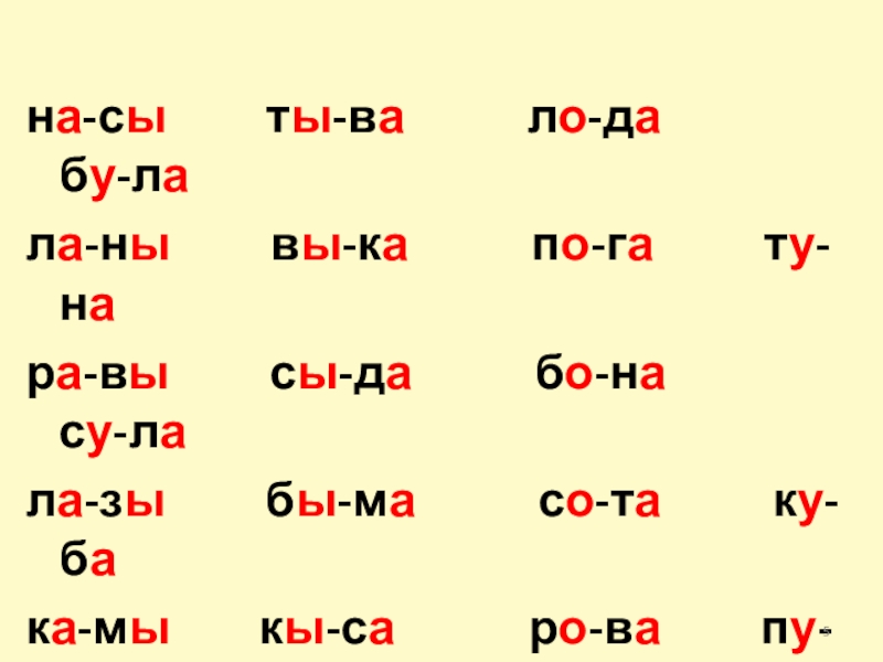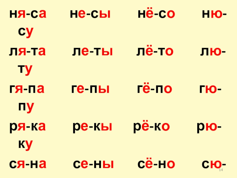 ня-са    не-сы    нё-со    ню-суля-та    ле-ты