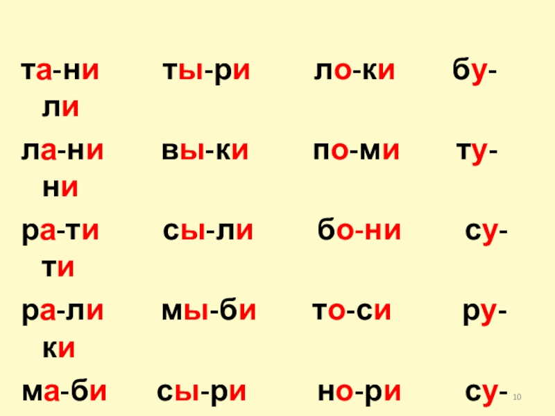та-ни     ты-ри     ло-ки    бу-лила-ни