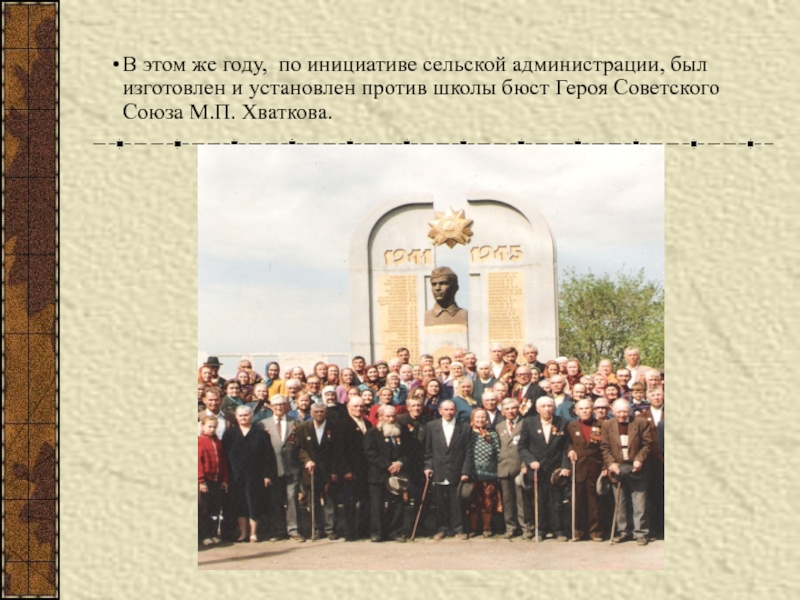 Слайд 32В этом же году, по инициативе сельской администрации, был изготовлен и