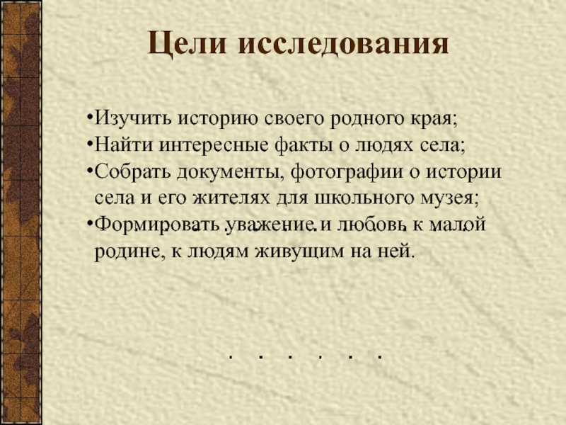 исследовательской деятельности в ходе работы над изучением своего родного села.