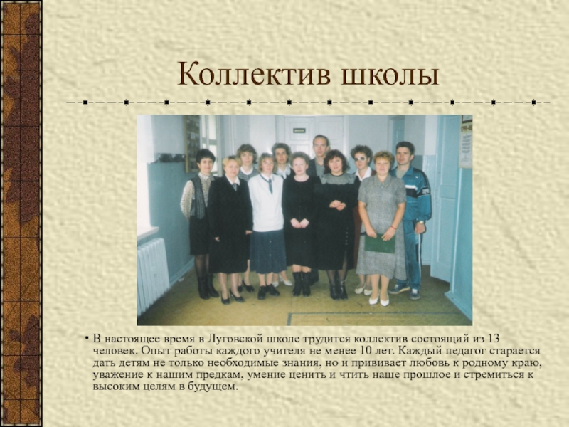 В настоящее время в Луговской школе трудится коллектив состоящий
