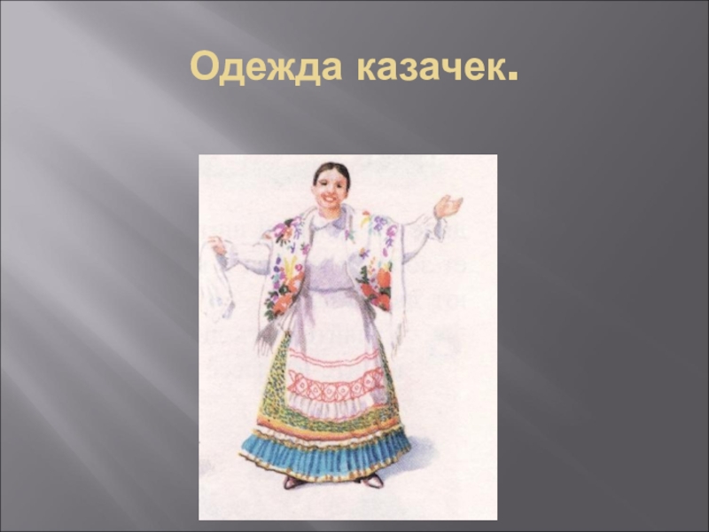 Слайд 14Одежда казачек.