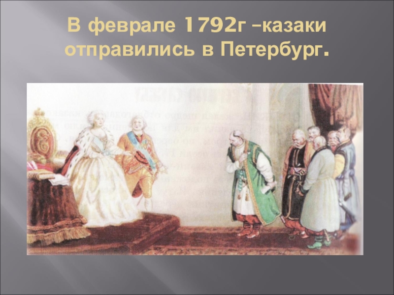 Слайд 5В феврале 1792г –казаки отправились в Петербург.