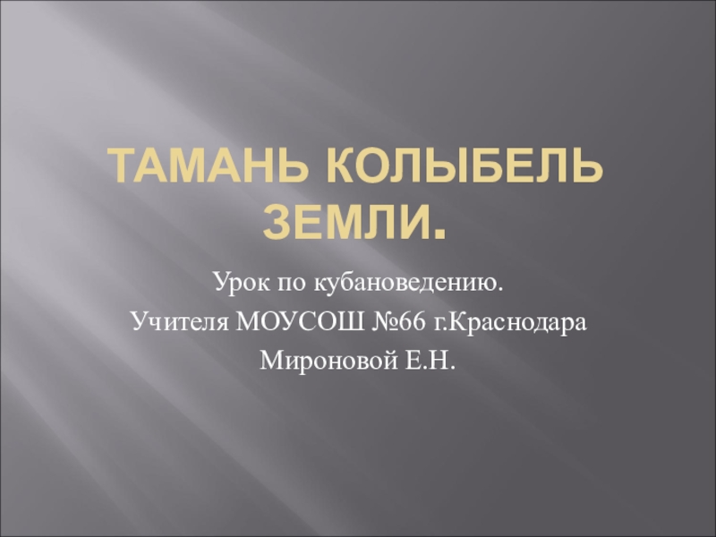 ТАМАНЬ КОЛЫБЕЛЬ ЗЕМЛИ.Урок по кубановедению.Учителя МОУСОШ №66 г.КраснодараМироновой Е.Н.