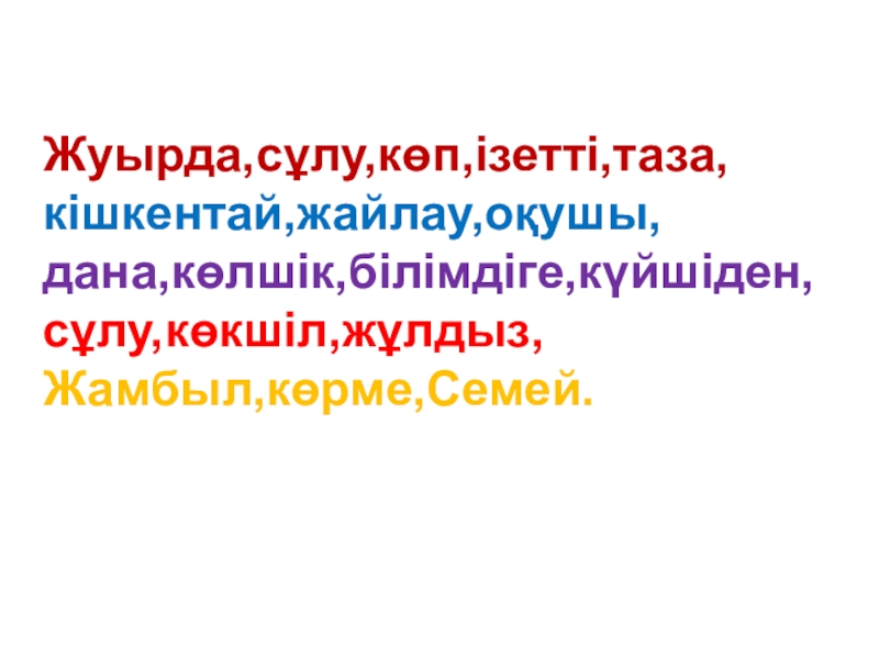 Слайд 17Жуырда,сұлу,көп,ізетті,таза,