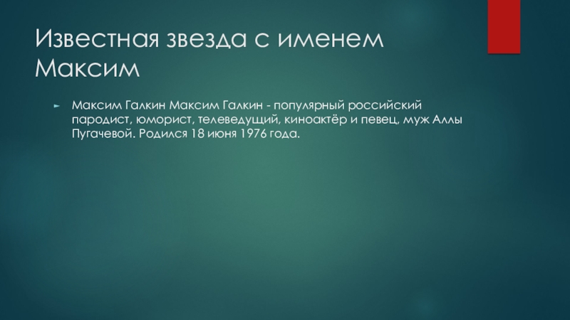Слайд 10Пик успеха для Максима приходится на первую половину его жизни. В