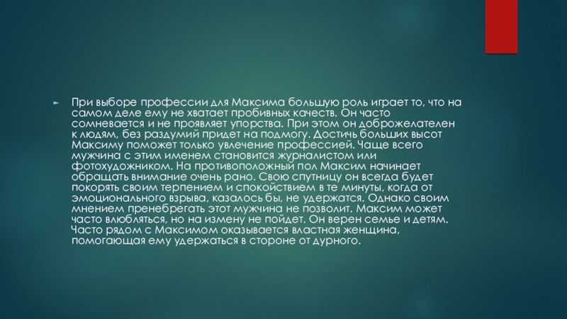 Слайд 12При выборе профессии для Максима большую роль играет то, что на