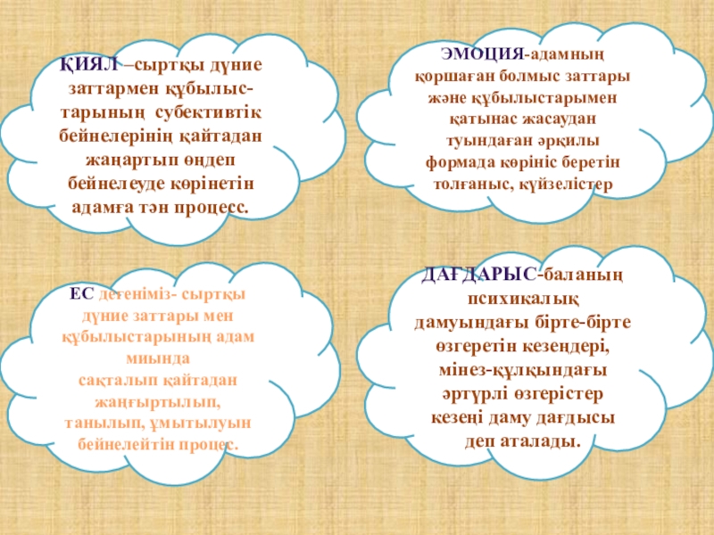 Қиял –сыртқы дүние заттармен құбылыс- тарының субективтік бейнелерінің қайтадан жаңартып өңдеп бейнелеуде көрінетін адамға тән процесс.