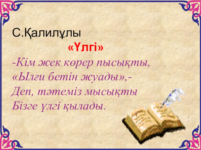 С.Қалилұлы            «Үлгі» -Кім жек көрер пысықты,